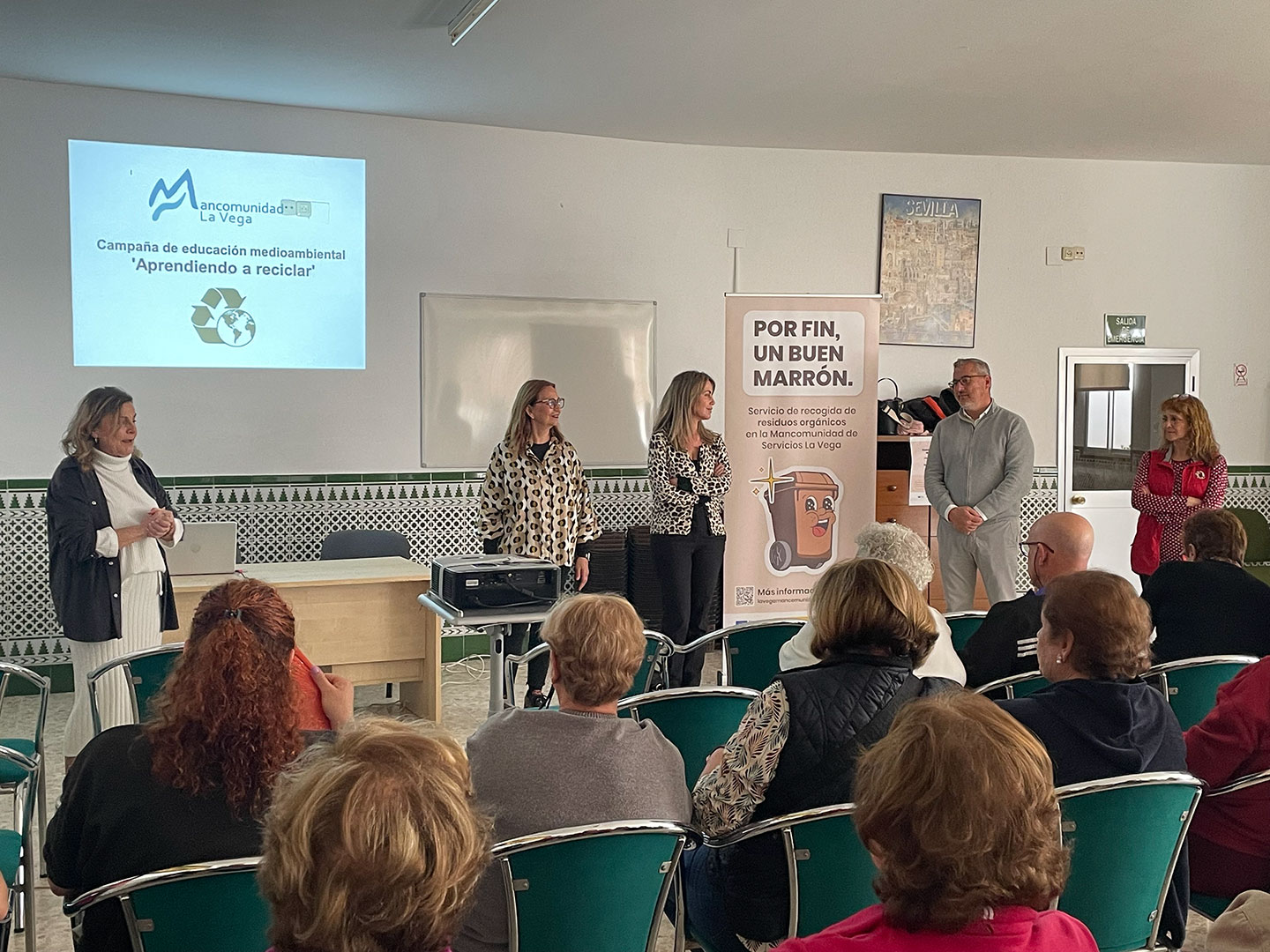 La Mancomunidad de La Vega ha presentado este lunes en Gerena la campaña “Por fin, un buen marrón” sobre el nuevo servicio de recogida de materia orgánica. El objetivo es fomentar la separación de este tipo de residuos y su aprovechamiento para la producción de compost. La charla informativa, celebrada en el Hogar Municipal de Pensionistas, contó con la asistencia de unas 50 personas.