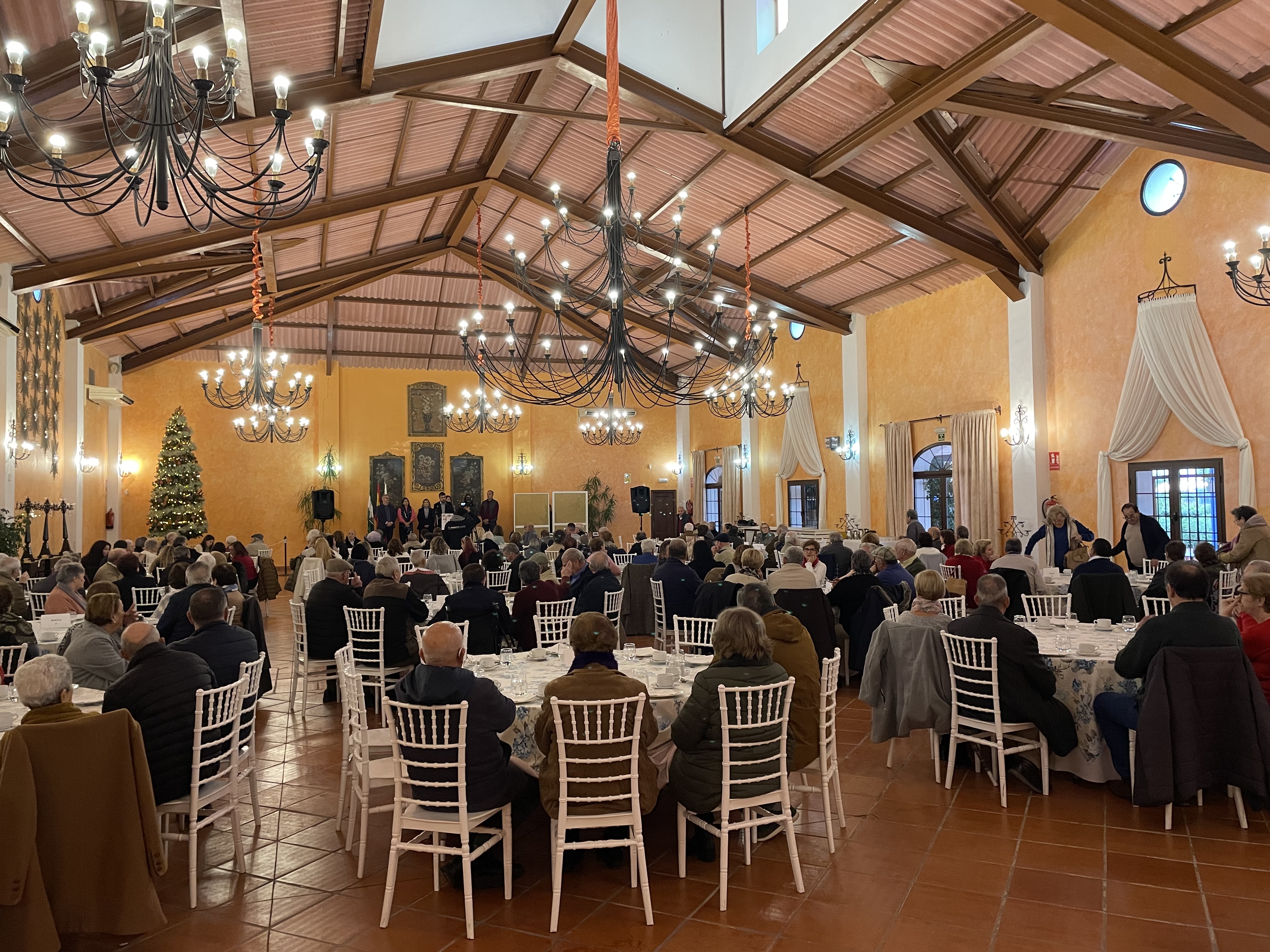 El alcalde les entrega un reconocimiento en la merienda navideña de personas mayores