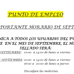 HORARIO DEL PUNTO DE EMPLEO DE GERENA DURANTE EL MES DE SEPTIEMBRE