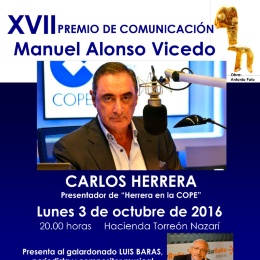 CARLOS HERRERA RECOGERÁ EL PREMIO MANUEL ALONSO VICEDO EL 3 DE OCTUBRE