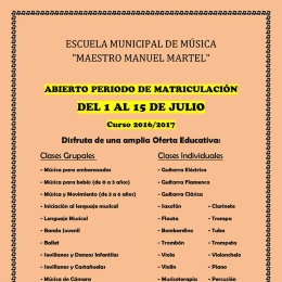 ABIERTO EL PLAZO DE MATRICULACIÓN EN LA ESCUELA MUNICIPAL DE MÚSICA
