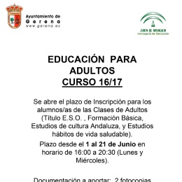 SE ABRE EL PLAZO DE INSCRIPCIÓN PARA LAS CLASES DE ADULTOS 2016/17