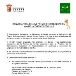 CONVOCATORIA DEL PREMIO DE COMUNICACIÓN MANUEL ALONSO VICEDO