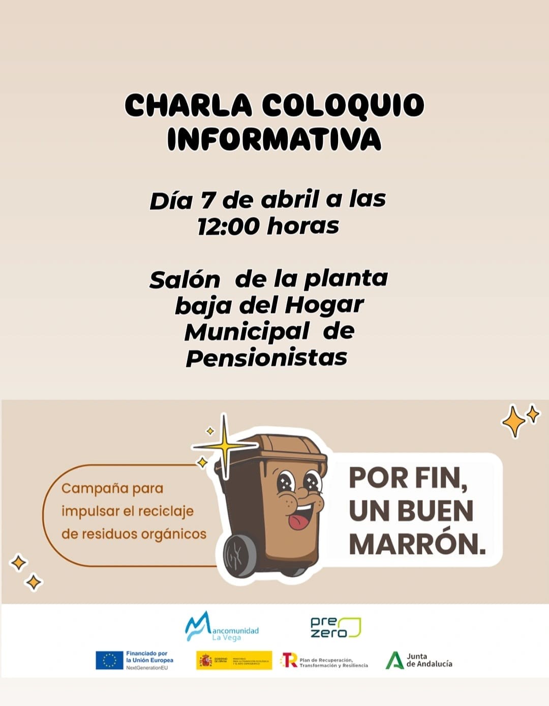 - Lunes 7 de abril de 2025- 12:00 horas- Planta baja del Hogar Municipal de Pensionistas