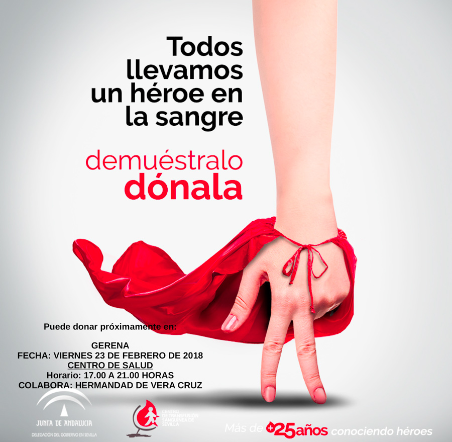El viernes 23 DE FEBRERO habrá una campaña de donación de sangre en #Gerena en el Centro de Salud. Se necesita sangre de todos los grupos sanguíneos, ESPECIALMENTE de los GRUPOS 0, A NEGATIVOS y 0 POSITIVO.