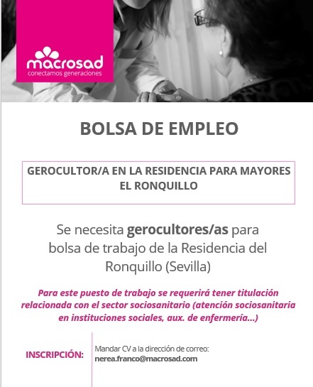Se necesitan gerocultores/as para la bolsa de trabjao de la Residencia de El Ronquillo (Sevilla).