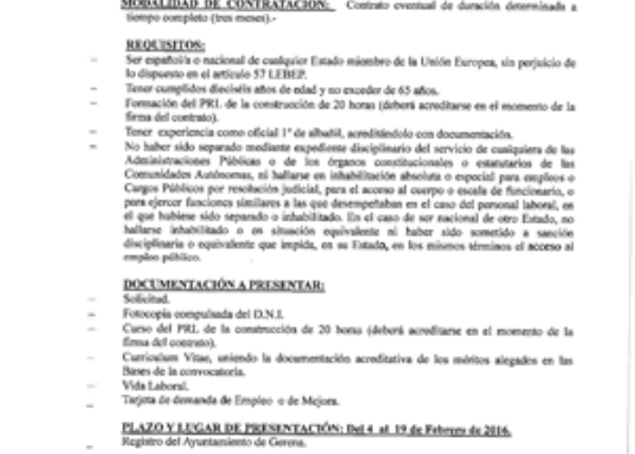 Interesados/as enviar CV por mail a rrhh@telcid.es o inscribirse telefónicamente en la oferta en el teléfono 647678197, de 9 a 15 horas.