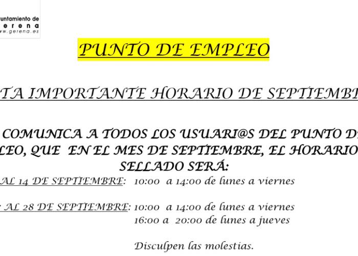 Del 3 al 14 de septiembre el horario de sellado será de 10 a 14 horas de lunes a viernes, en el Centro de Formación Municipal, c/ Cañada Ancha, s/n. ...